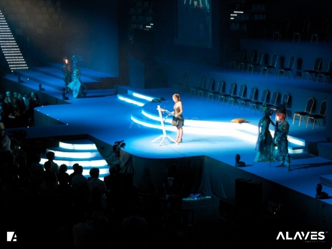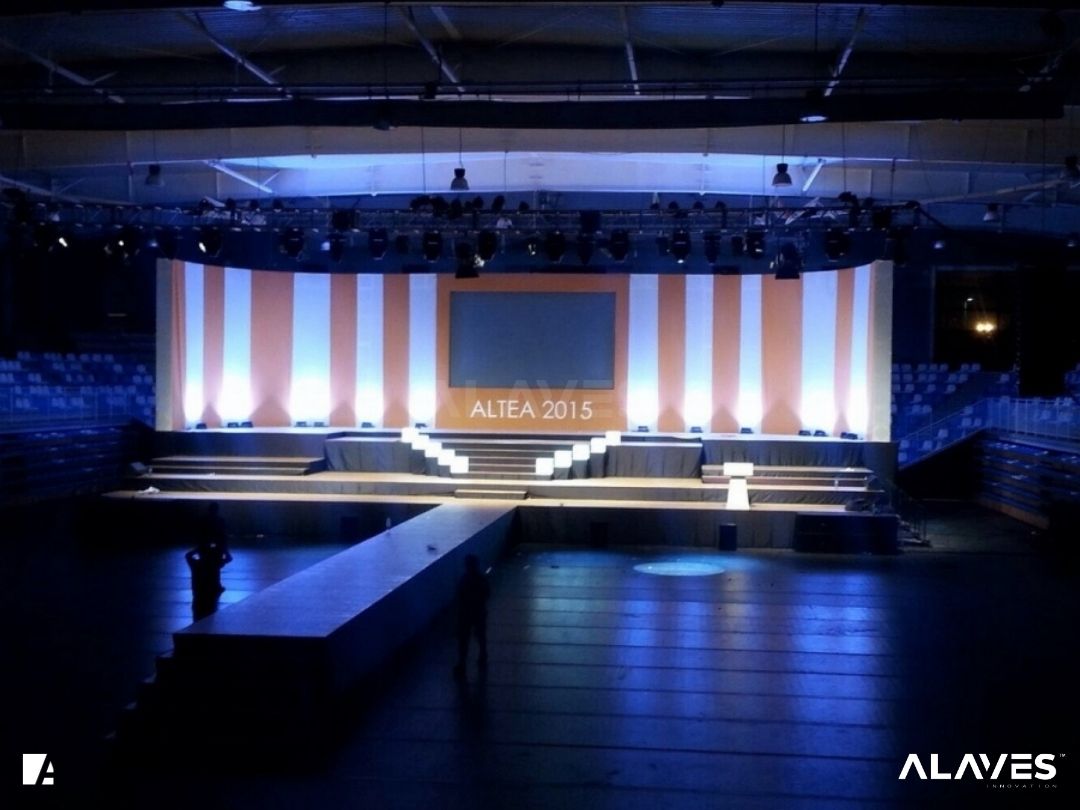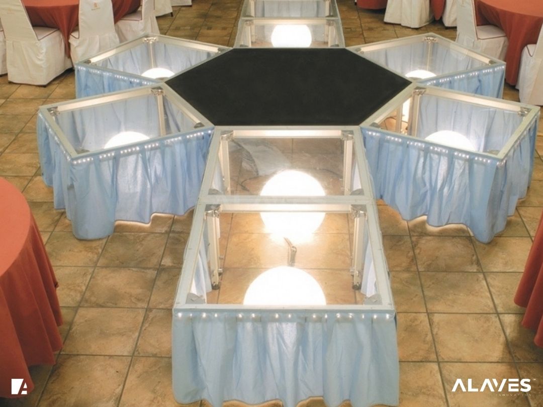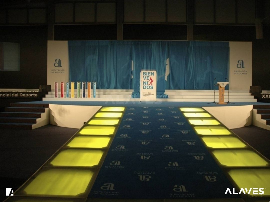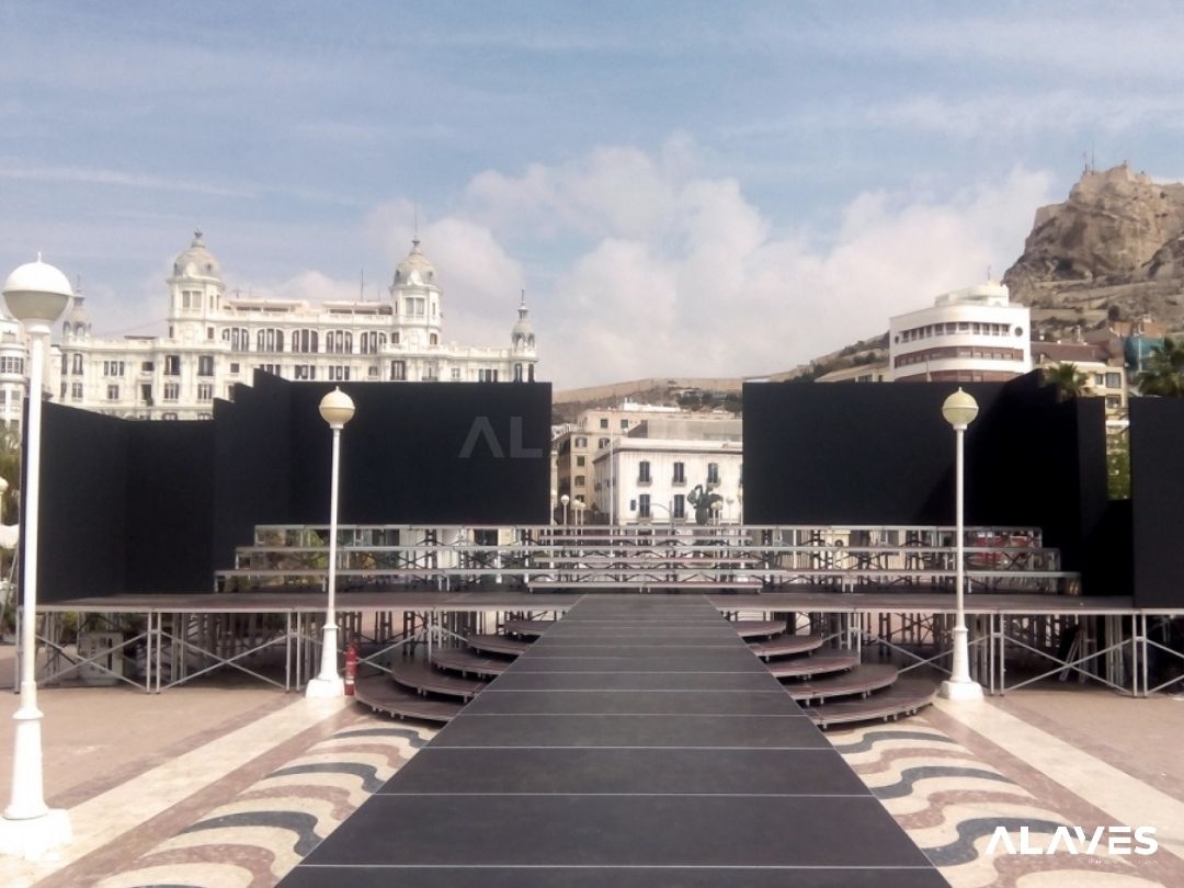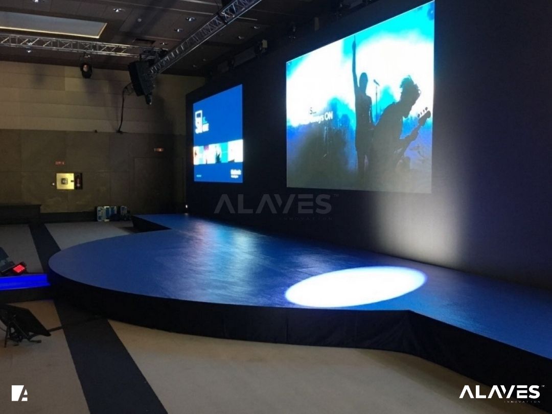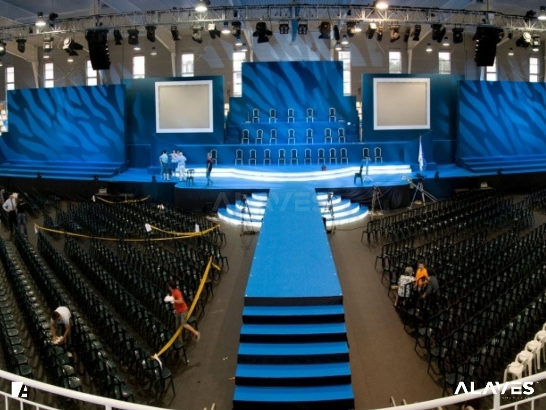 Nuestros escenarios con sistema PROKT™ destacan por su solidez, rapidez de montaje y adaptabilidad a cualquier superficie. Gracias a la combinación de tarimas modulares, patas telescópicas y accesorios patentados, ofrecemos soluciones seguras y versátiles que se ajustan a las necesidades de cada evento.