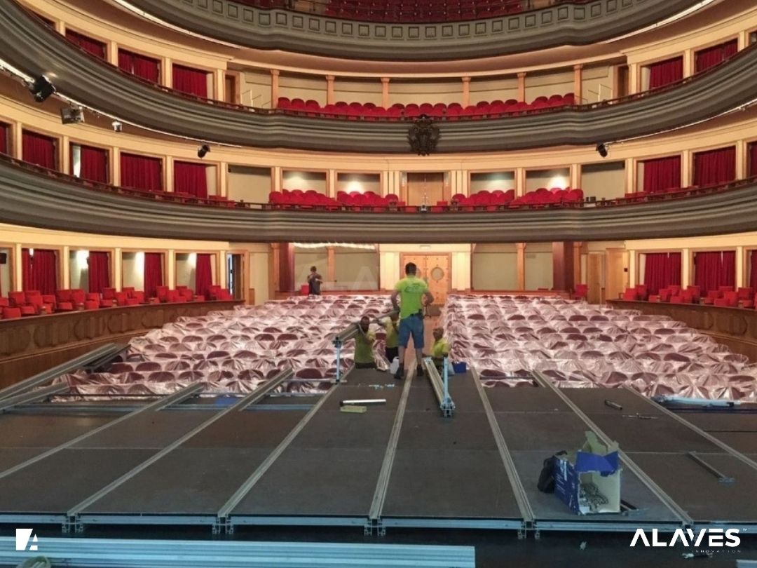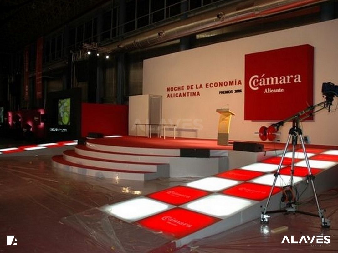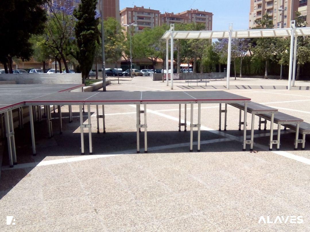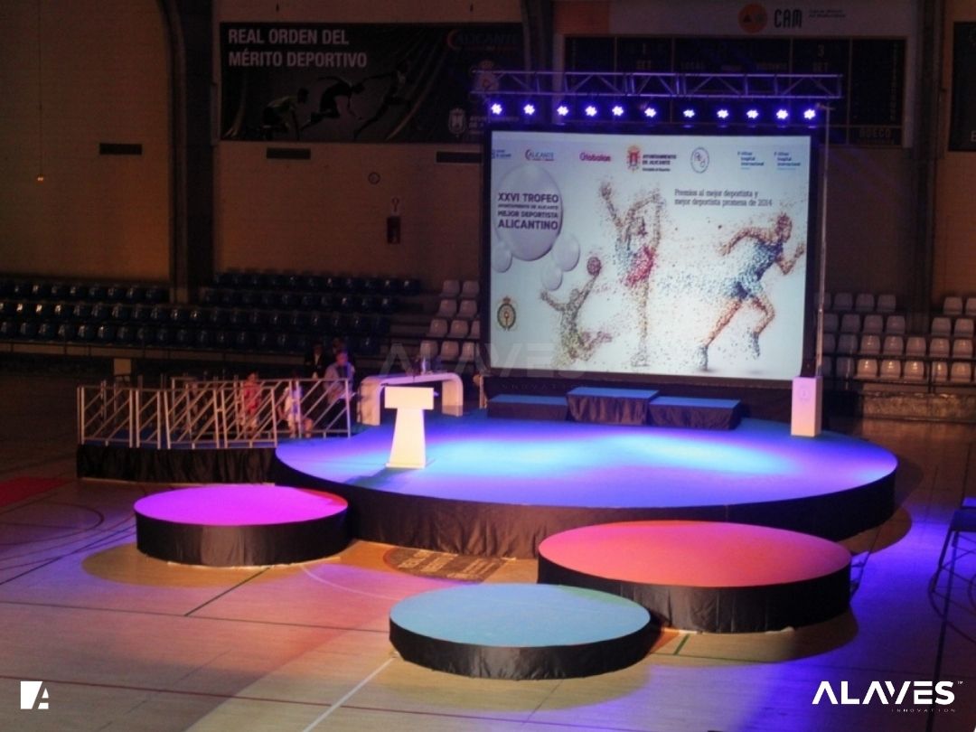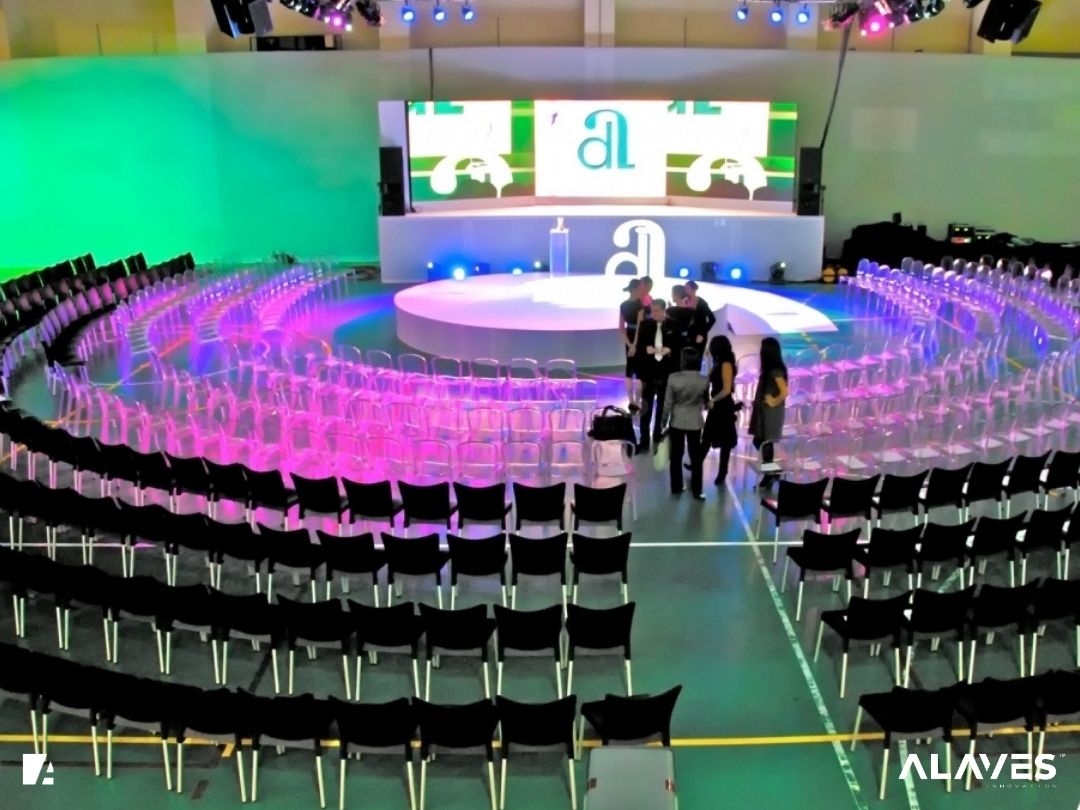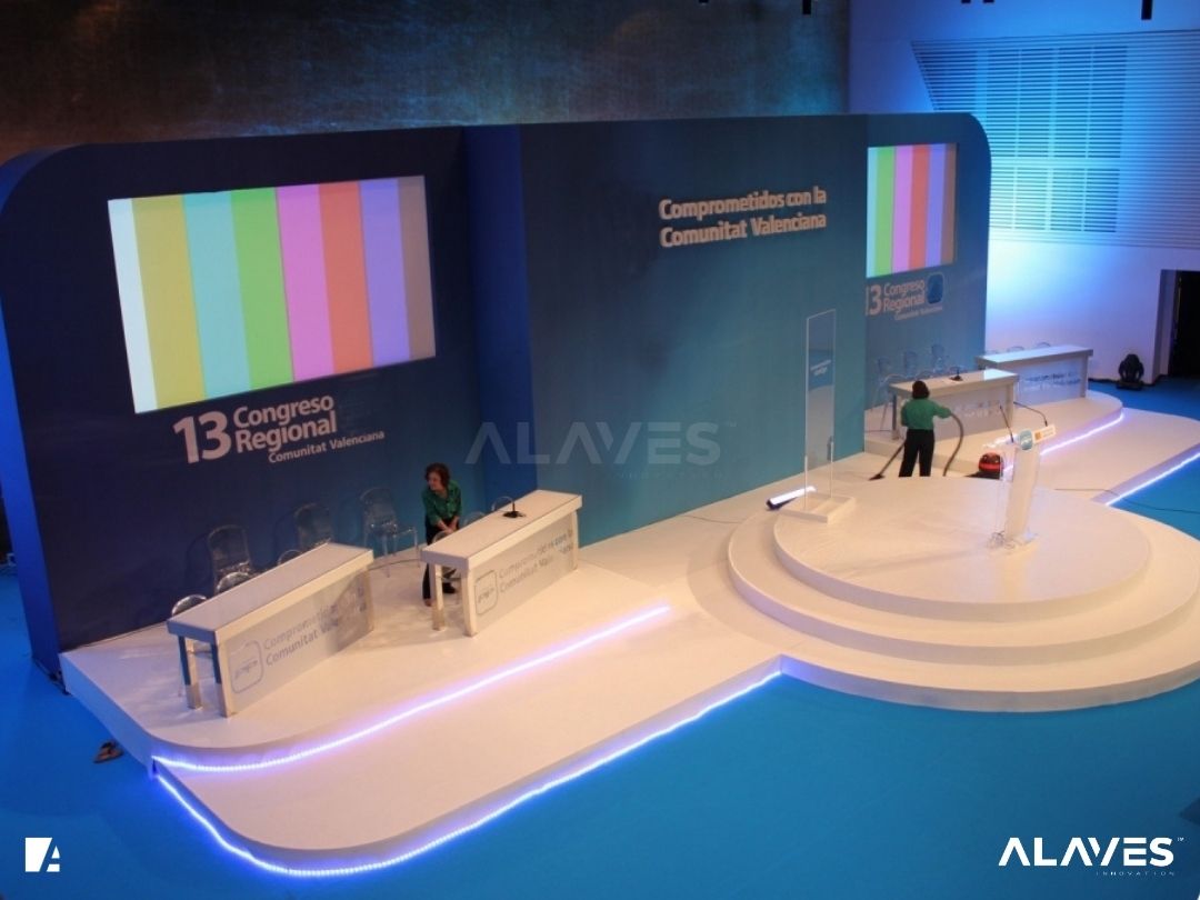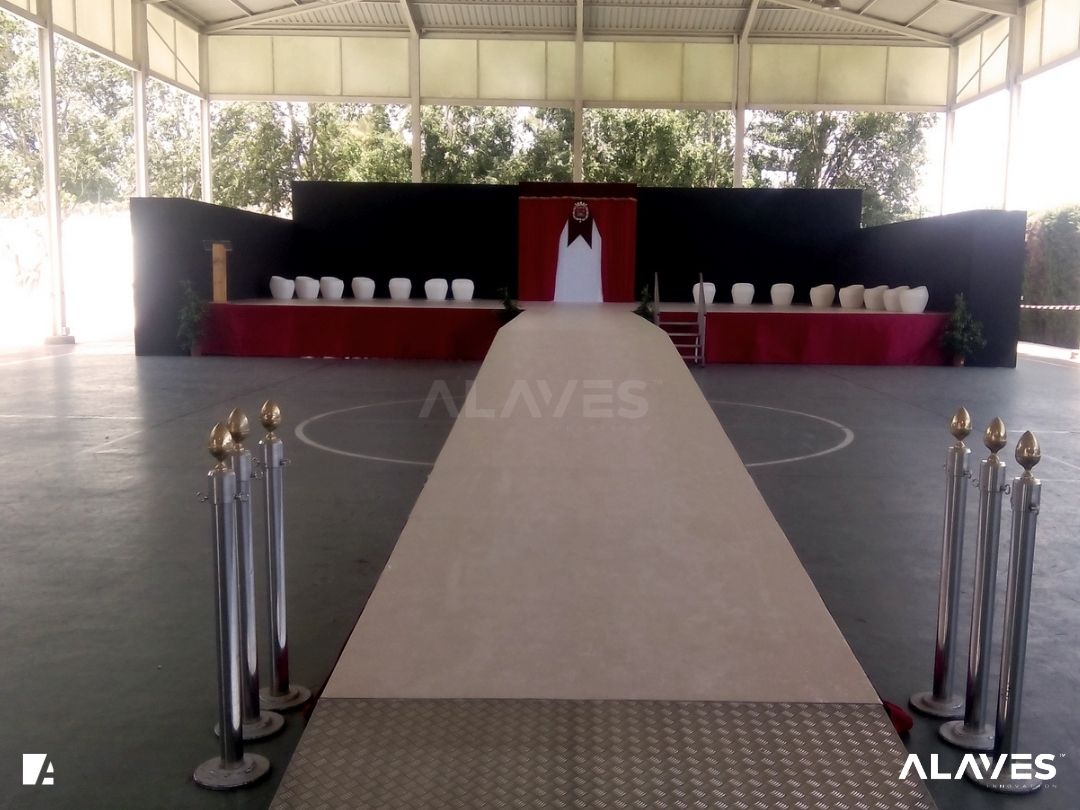 Nuestros escenarios con sistema PROKT™ destacan por su solidez, rapidez de montaje y adaptabilidad a cualquier superficie. Gracias a la combinación de tarimas modulares, patas telescópicas y accesorios patentados, ofrecemos soluciones seguras y versátiles que se ajustan a las necesidades de cada evento.