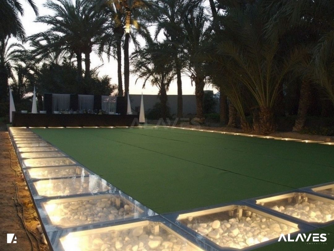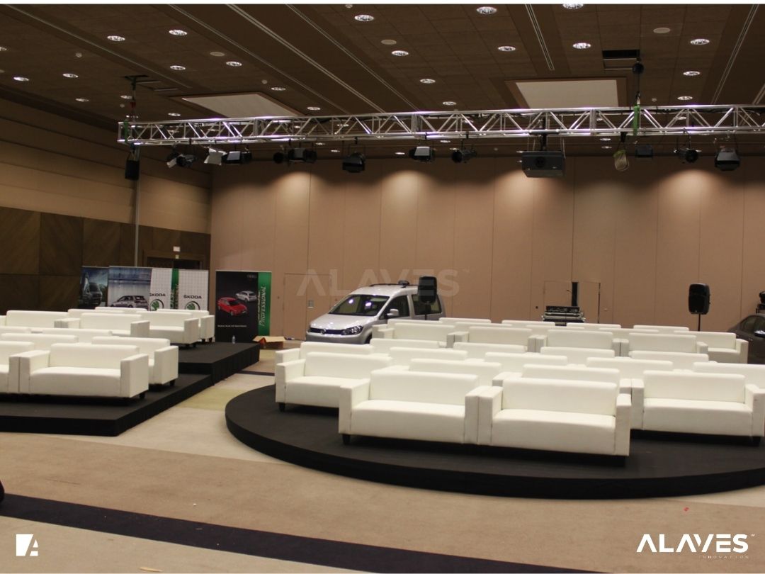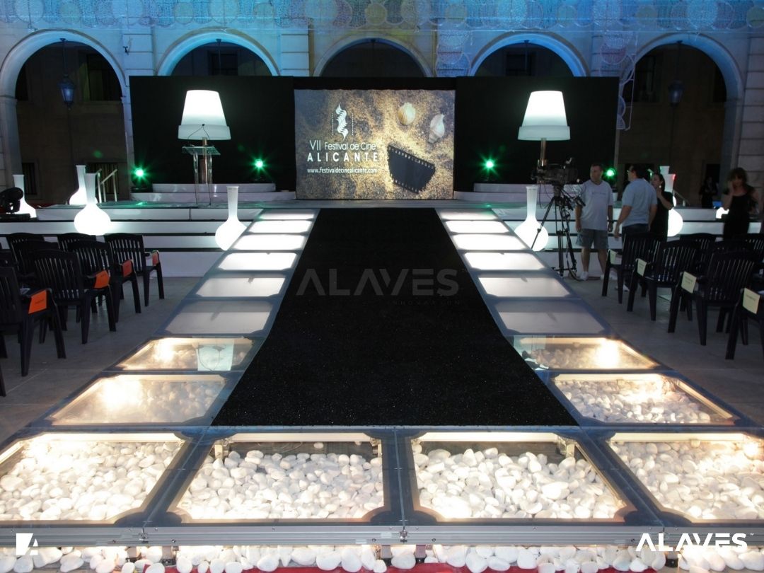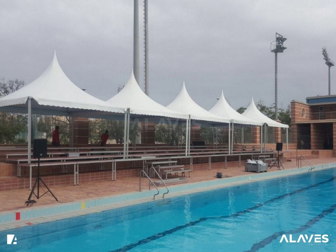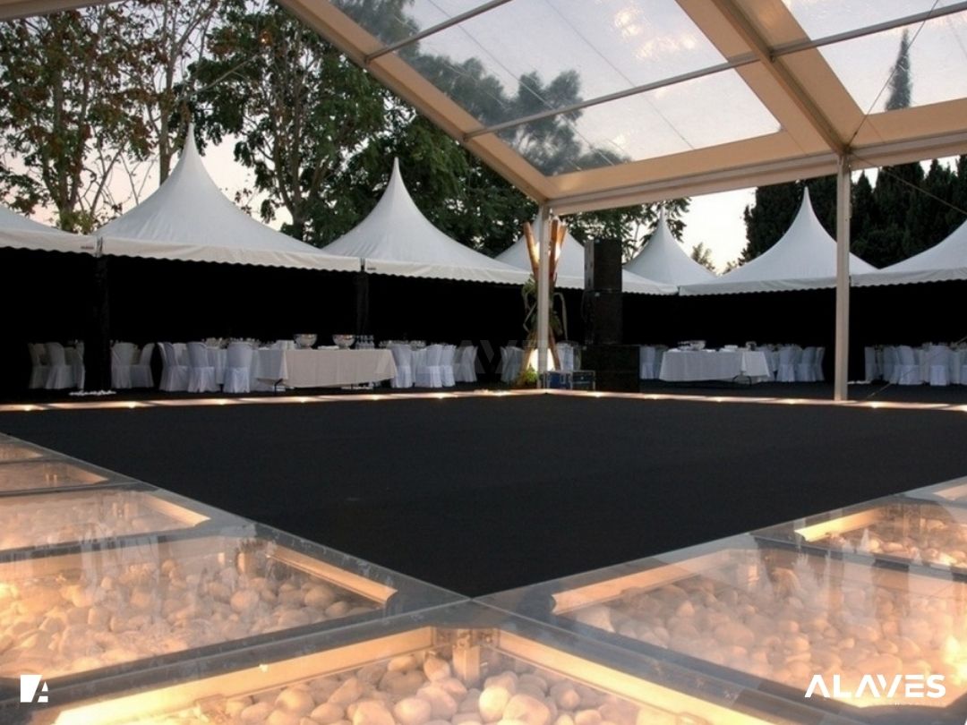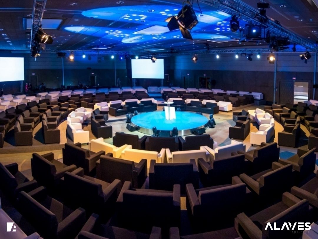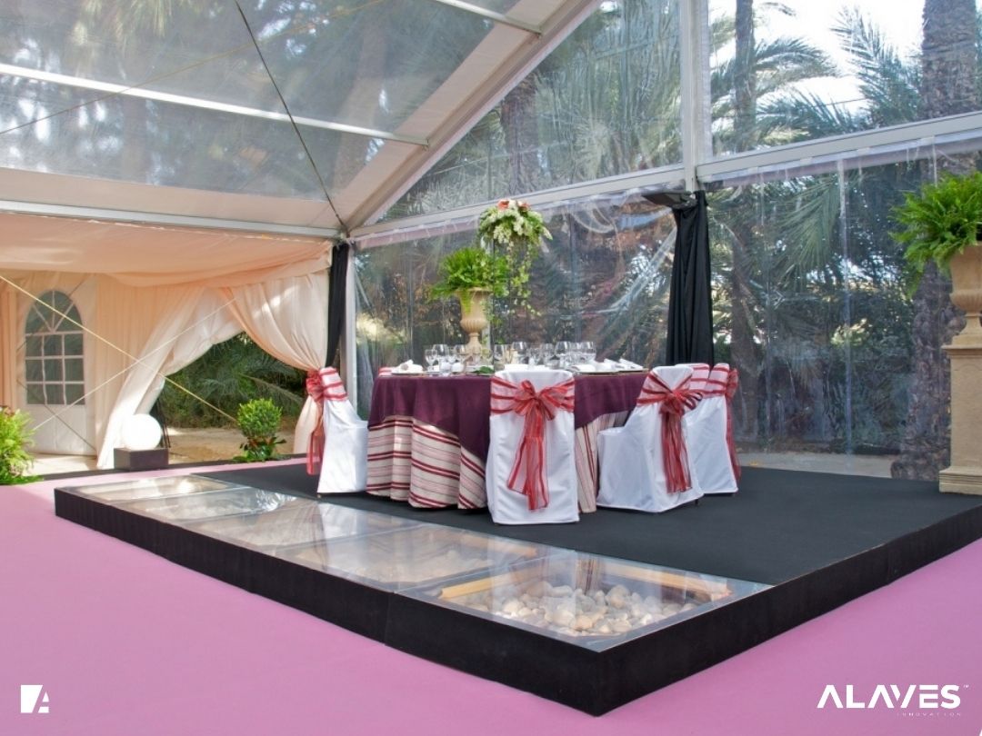 Nuestros escenarios con sistema PROKT™ destacan por su solidez, rapidez de montaje y adaptabilidad a cualquier superficie. Gracias a la combinación de tarimas modulares, patas telescópicas y accesorios patentados, ofrecemos soluciones seguras y versátiles que se ajustan a las necesidades de cada evento.