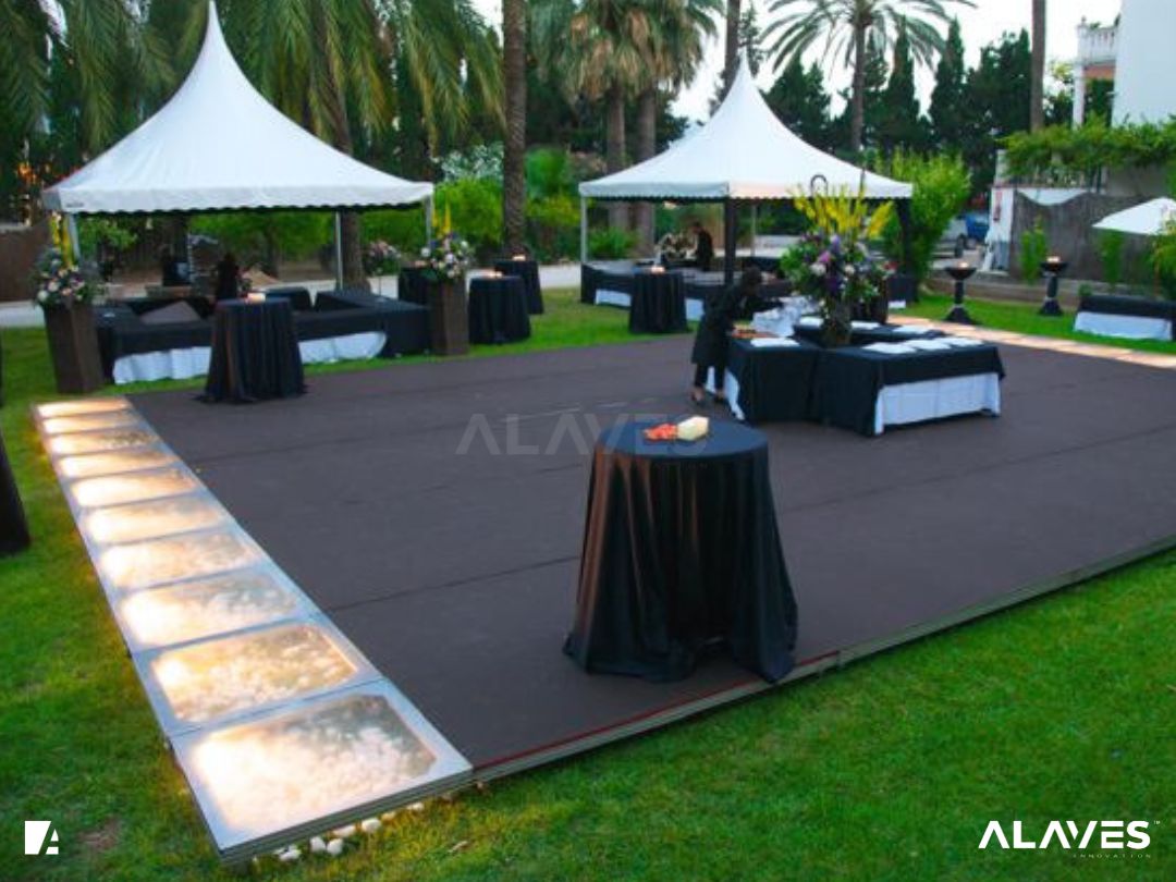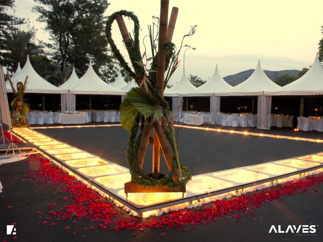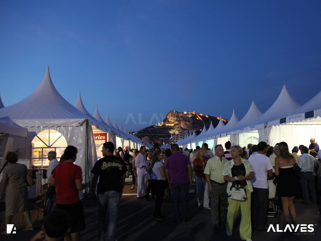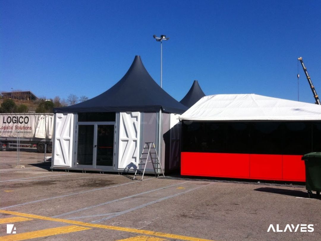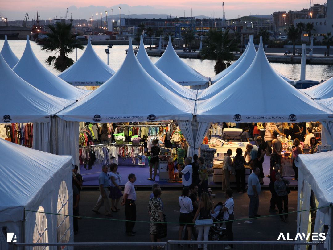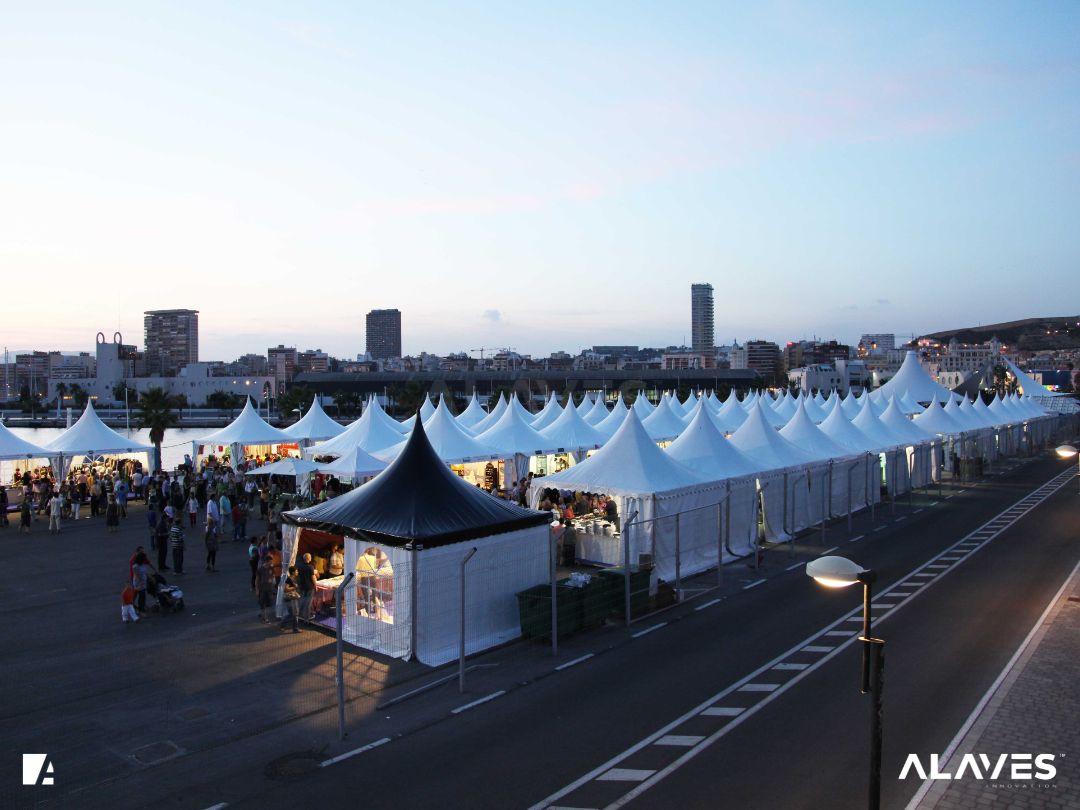 Las jaimas y pagodas son una solución práctica para eventos de menor escala que requieren cubrir espacios de forma sencilla y funcional. Su diseño con techo en forma piramidal facilita la evacuación de agua y aporta una estética básica y reconocible.