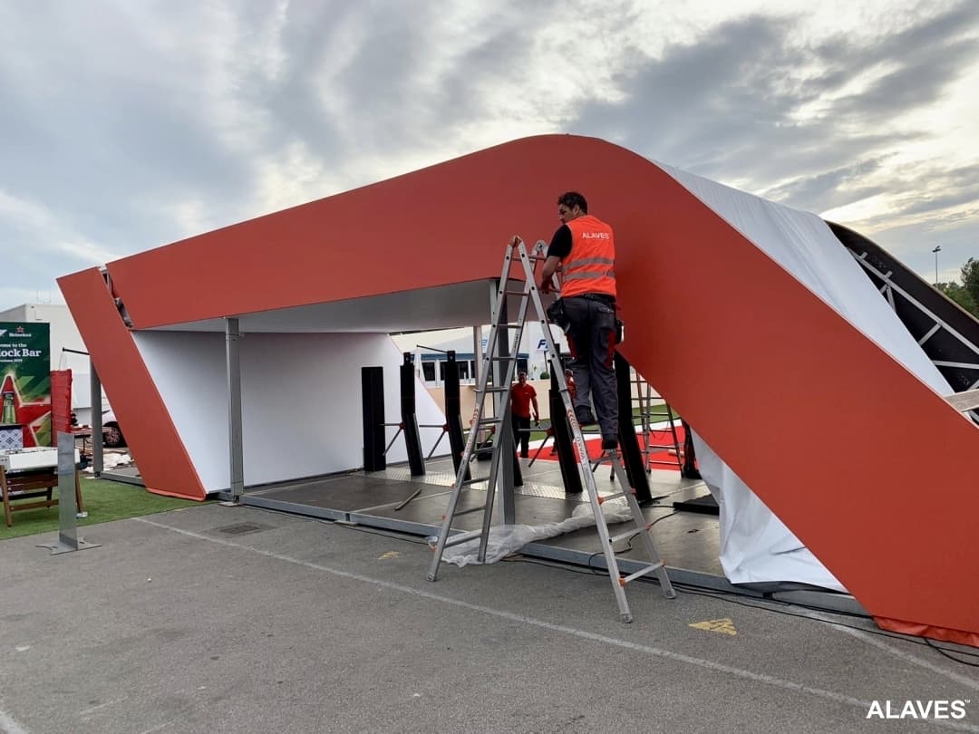 Estructura instalada por nuestro equipo de ALAVES, en Torrevieja-Alicante , para presentación de un nuevo Proyecto, del grupo Baraka.