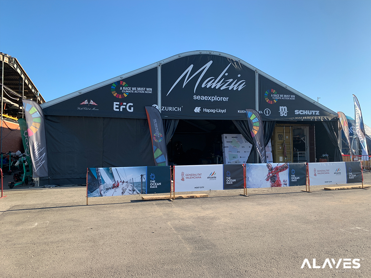 Estructura instalada por nuestro equipo de ALAVES, en Torrevieja-Alicante para presentación de un nuevo Proyecto, del grupo Baraka.